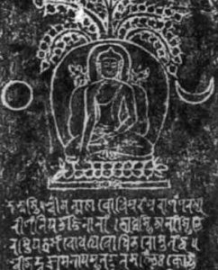 Sanskrit manuscript: Buddha under the Bodhi tree (~1000 y.o.)
